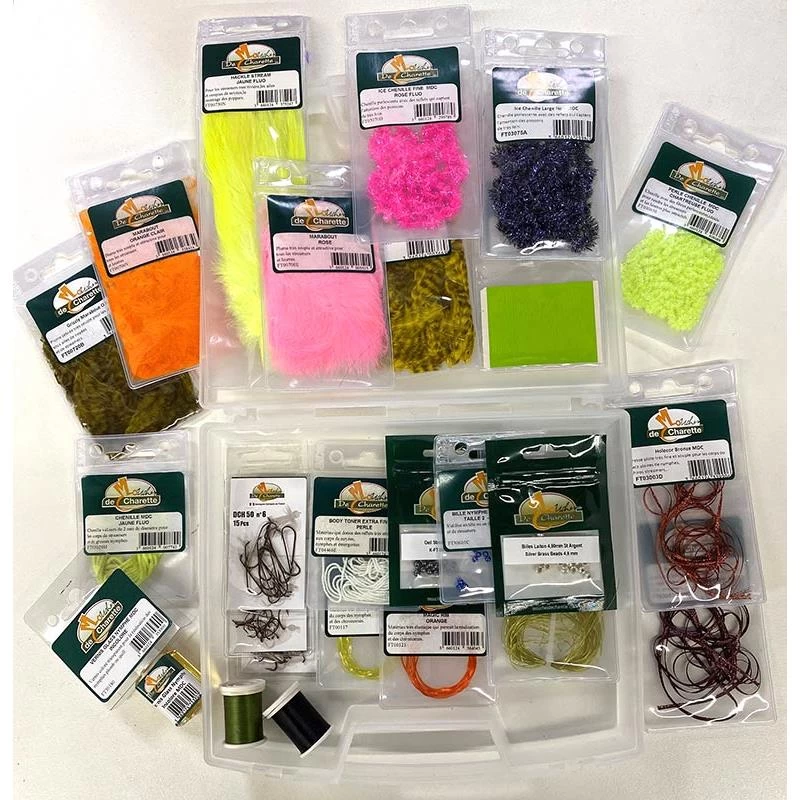 • 2 pochettes de Hackle stream (Jaune fluo et Noir)